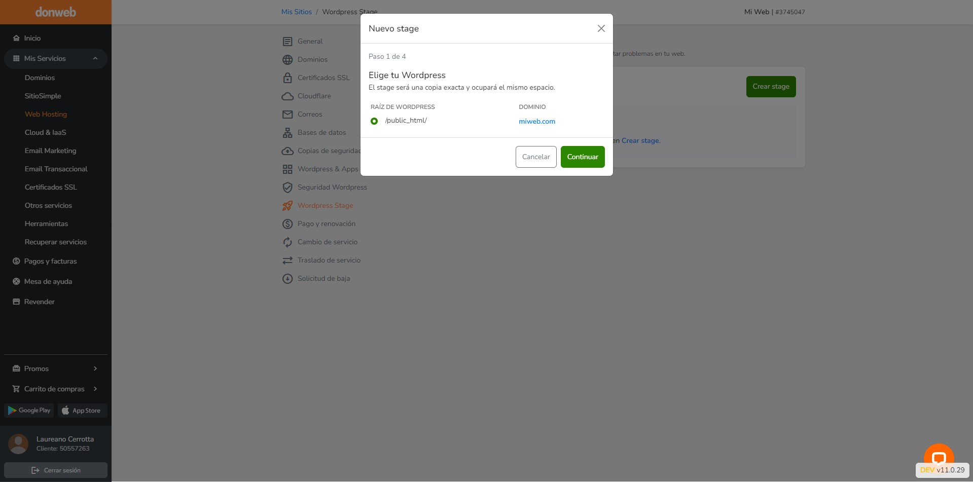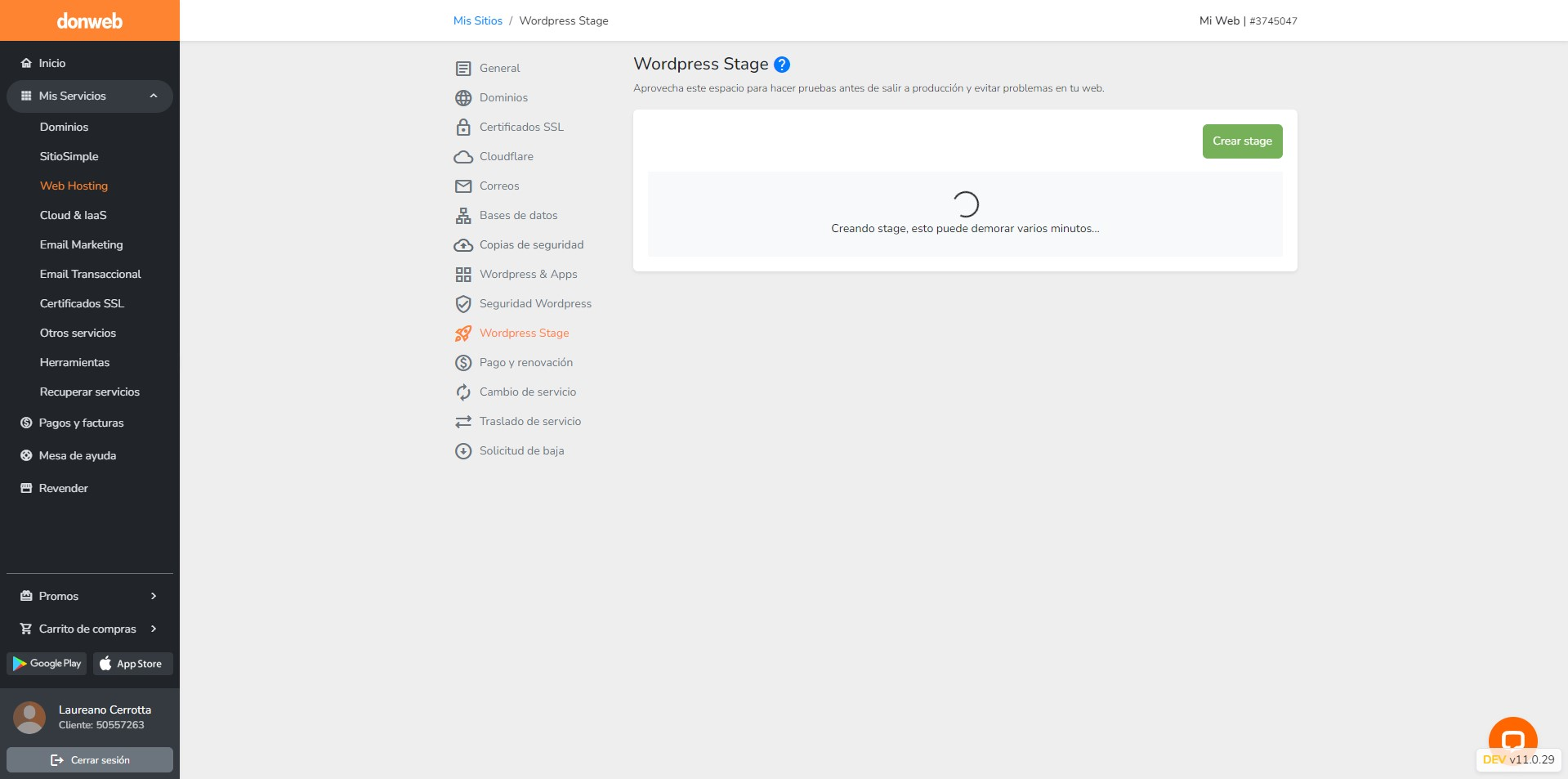 3 - Sólo se puede crear un stage por cuenta de hosting al mismo tiempo.