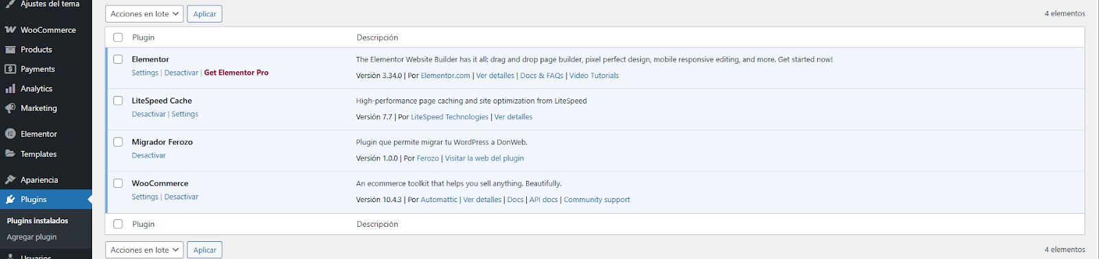 El plugin quedará activo como cualquier otro plugin de WordPress (tal como se ve en la imagen de referencia).