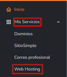 - Haz clic en Mis servicios y, en el desplegable, selecciona Web Hosting o WordPress Hosting.