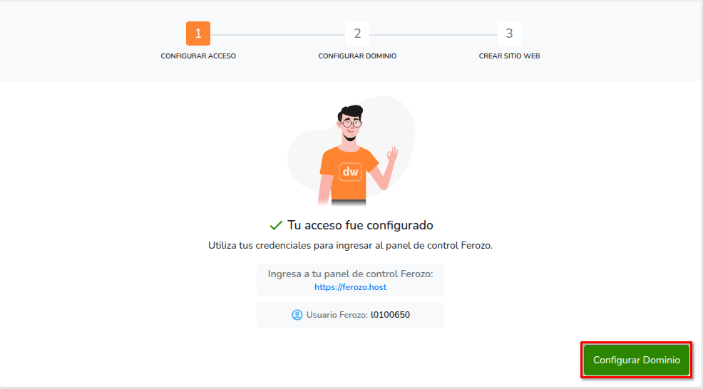 - Una vez configurado el acceso, presiona el botón Configurar dominio.