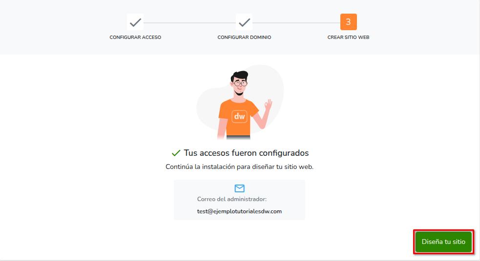 - Una vez configurado el acceso, haz clic en Diseña tu sitio.