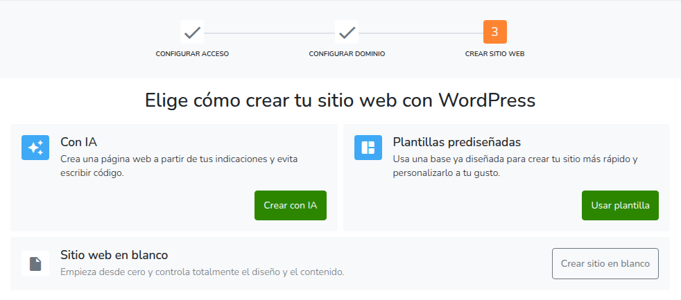 Listo, elige cómo quieres crear el sitio web.