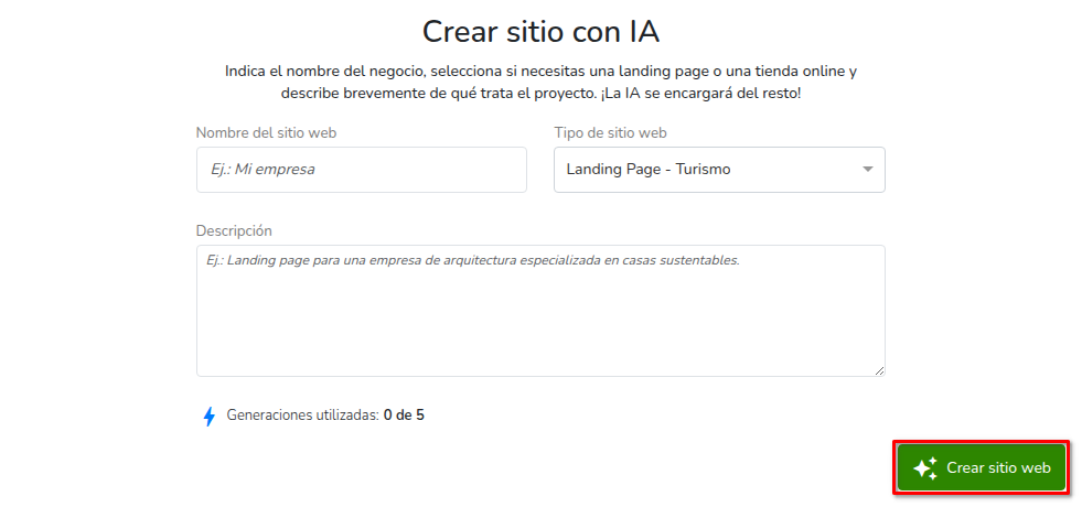 Crear sitio con IA
